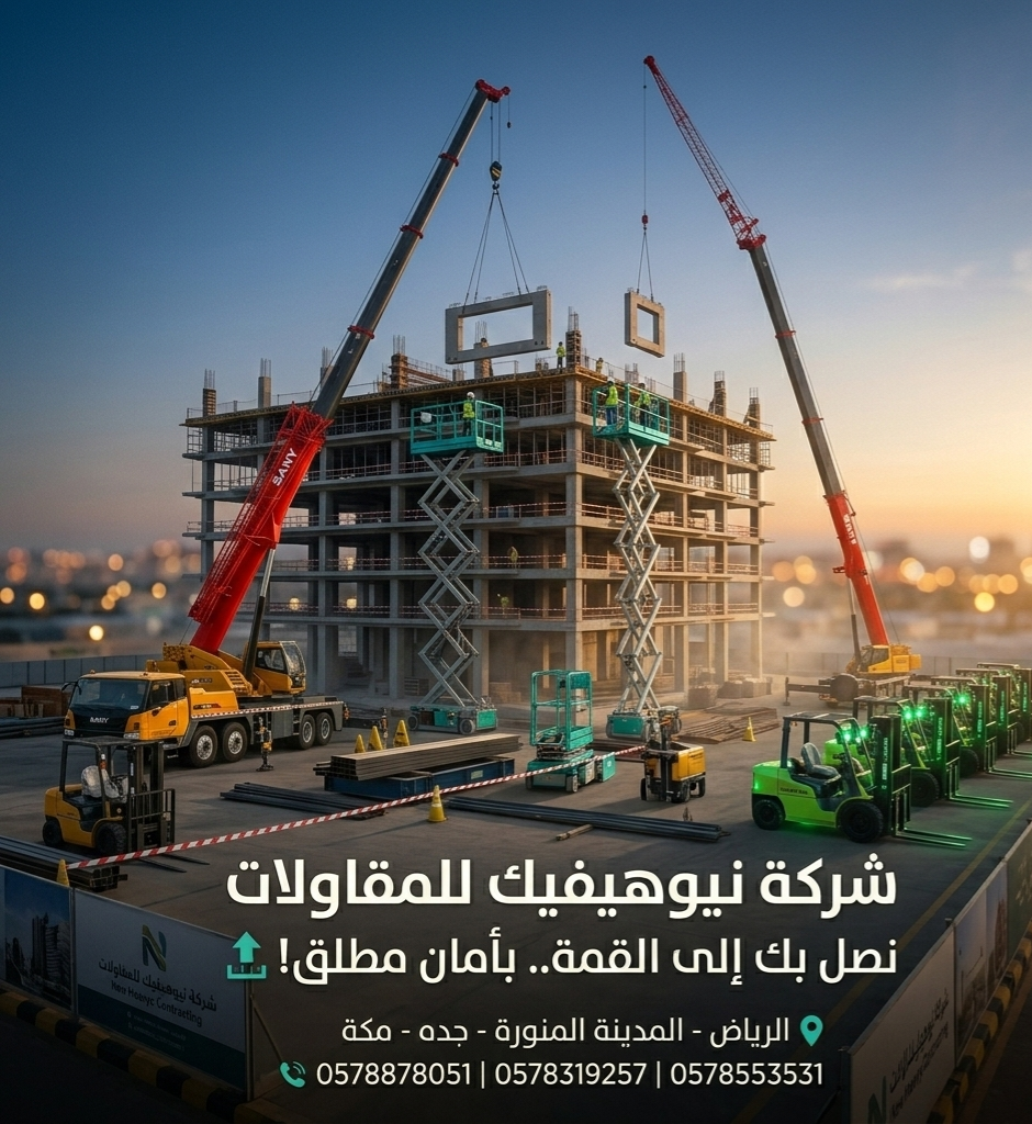 نصل بك إلى القمة.. بأمان مطلق! 🔝 في شركة نيوهيفيك للمقاولات، نؤمن أن المشاريع العملاقة تتطلب دقة متناهية ومعايير سلامة…